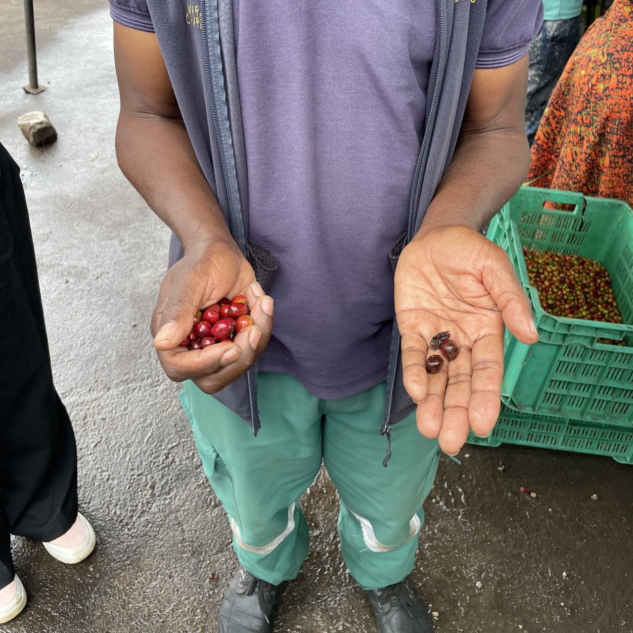 収集ポイントからWSへ運び入れられたチェリーは最初に浮力選 別を行います。密閉タンクへ投入し、72時間の嫌気性発酵させ ます。その後、薄く均等になるよう注意深くアフリカンベッド へ広げて乾燥します。約4週間をかけてゆっくりと11~12%まで 水分値を落としています。