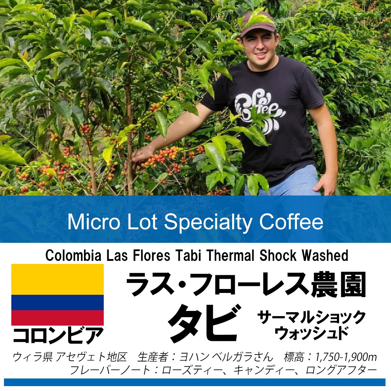 【50g】コロンビア ラス・フローレス農園 タビ サーマルショック ウォッシュ