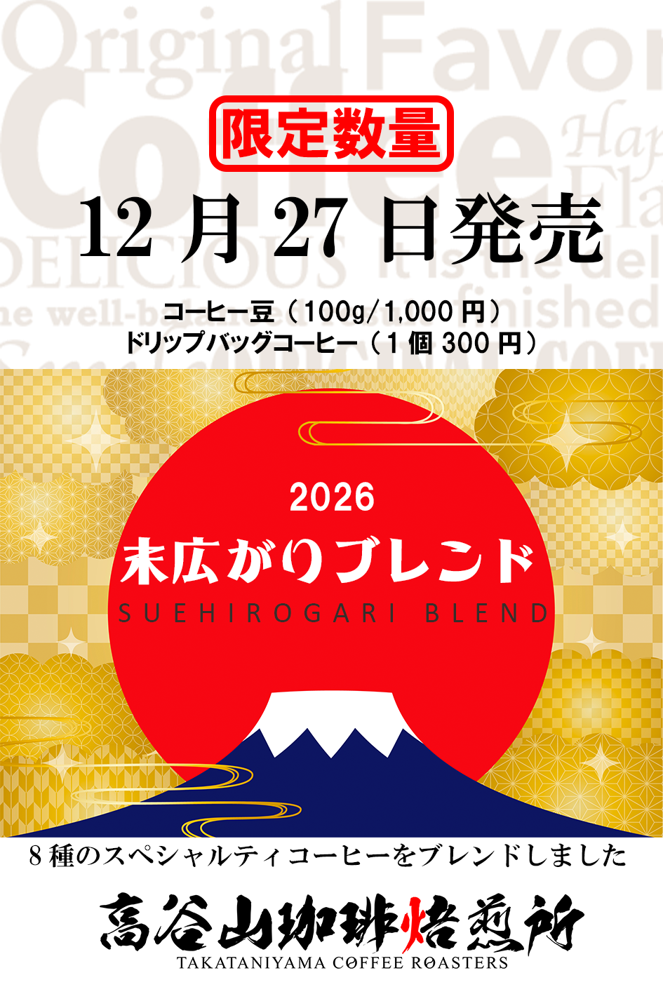 至高の一杯を目指すあなたに、8種類のスペシャルティコーヒーを贅沢にブレンドした「末広がりブレンド」が登場しました。